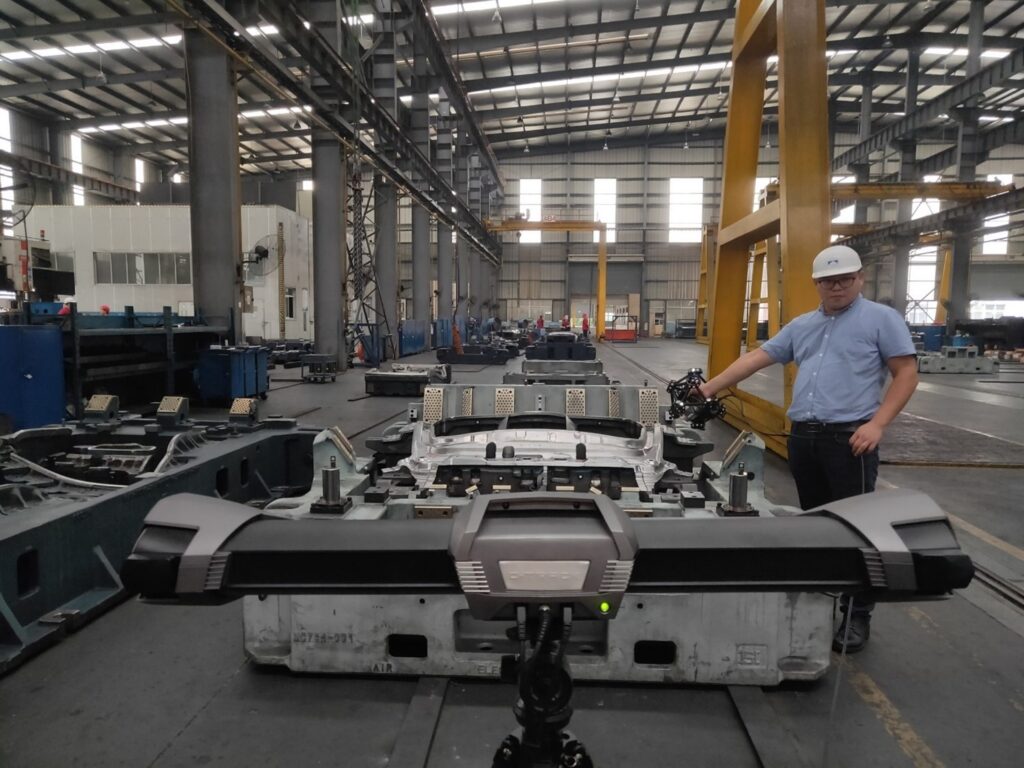 En kvalitetsmedarbejder scanner en støbeform med HandySCAN 3D direkte på værkstedsgulvet.