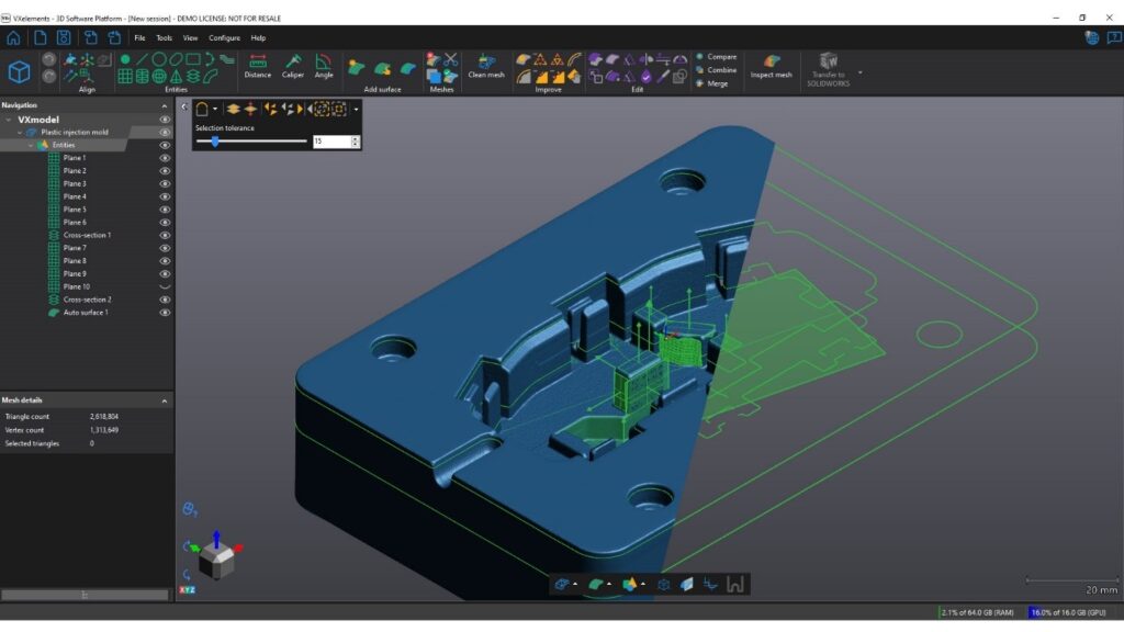 Det var lettere at lave reverse engineering af en støbeform ved at bruge enheder, der var genereret ved hjælp af VXmodel.