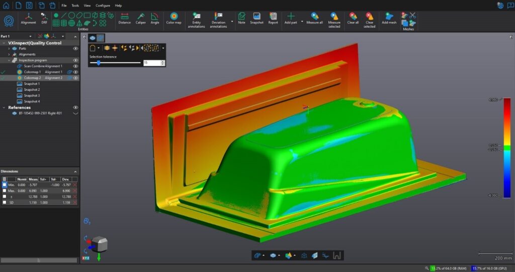 Karakterisering af defekter i et bad i VXinspect-modulet: Creaforms inspektionssoftware