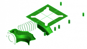 Tilsvarende skal du genskabe den nøjagtige form af et scannet produkt for at få en friformet overflademodel, der er baseret på et optimeret 3D-scanningsnet. For at gøre det skal du forbedre og optimere nettet ved at fylde huller, udglatte overflader og trimme kanter. Derefter kan du på det optimerede net skabe nøjagtige friformede overflader (NURBS) med kontrolpunkter. Igen sker alle disse handlinger direkte i en scan-til-CAD-software. Og herefter kan man importere friformsoverflademodellen til en CAD-software.